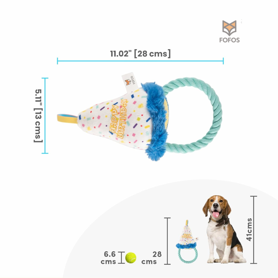 Celebrate your dog’s birthday with this fun party hat toy! Made with soft fabric and a strong rope, it ensures hours of entertainment.