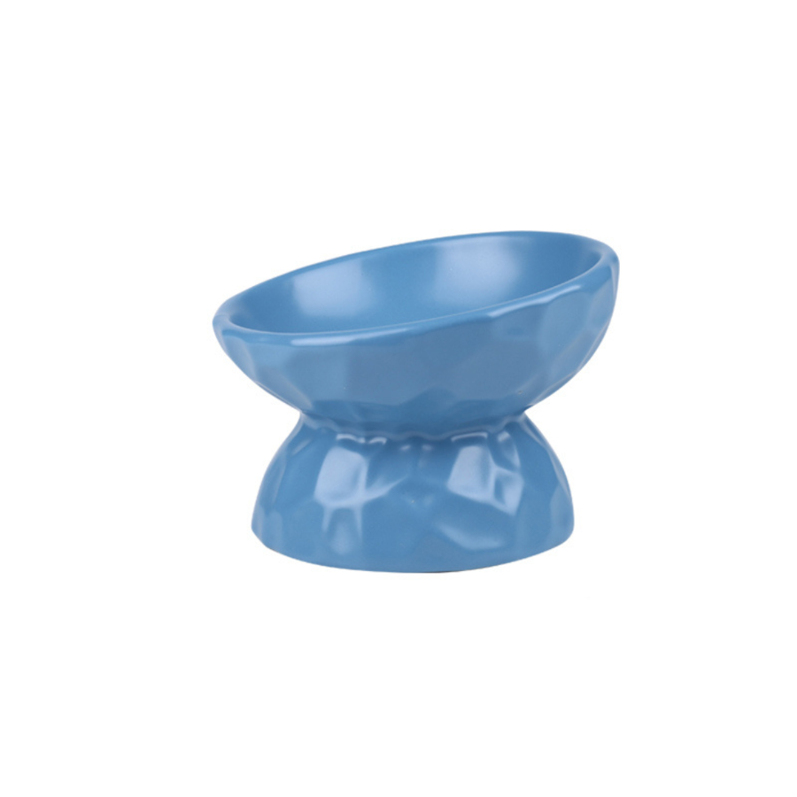Ceramic Tilted Bowl with Wavy Design, with a capacity of 280ml, perfect for providing a comfortable and healthy feeding experience for your cat. The tilted shape helps reduce neck strain and aids digestion, while the blue finish and wavy design add a stylish, modern touch.