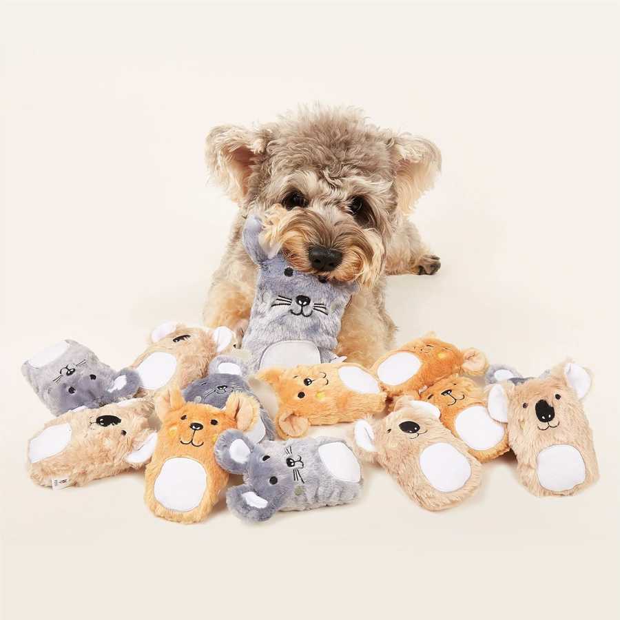 The FOFOS assorted plush toy collection blends softness, fun, and cuteness. Featuring adorable characters like a bear, mouse, and koala, these toys come with a squeaker inside to keep your dog entertained. With a medium size and ultra-soft texture, they’re ideal for small and medium dogs that love to chew, cuddle, or carry their toys around.