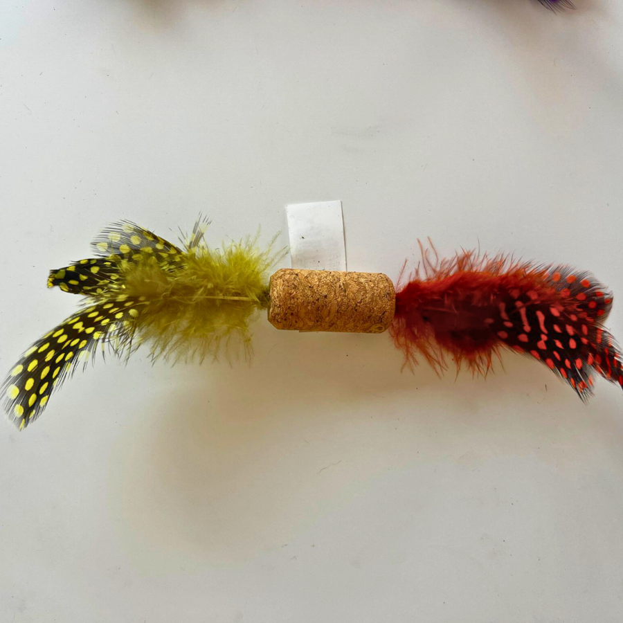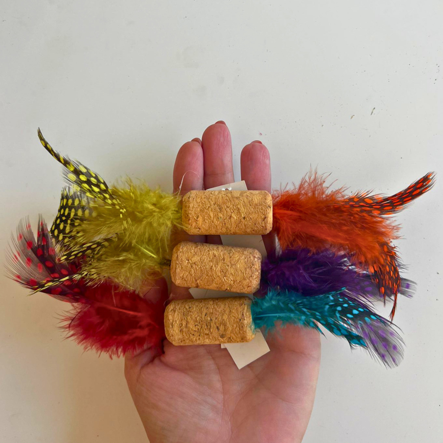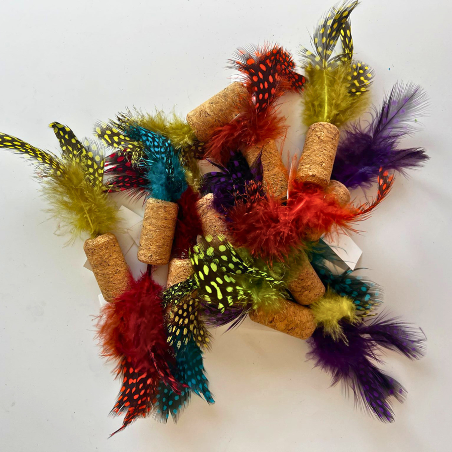 The colorful feathers are irresistible, creating a vibrant display that moves with the light flicks of the cork. Whether your cat is chasing, jumping, or grabbing, they will love this natural and safe toy. Each unit is sold with random colors, ensuring a fun surprise every time.