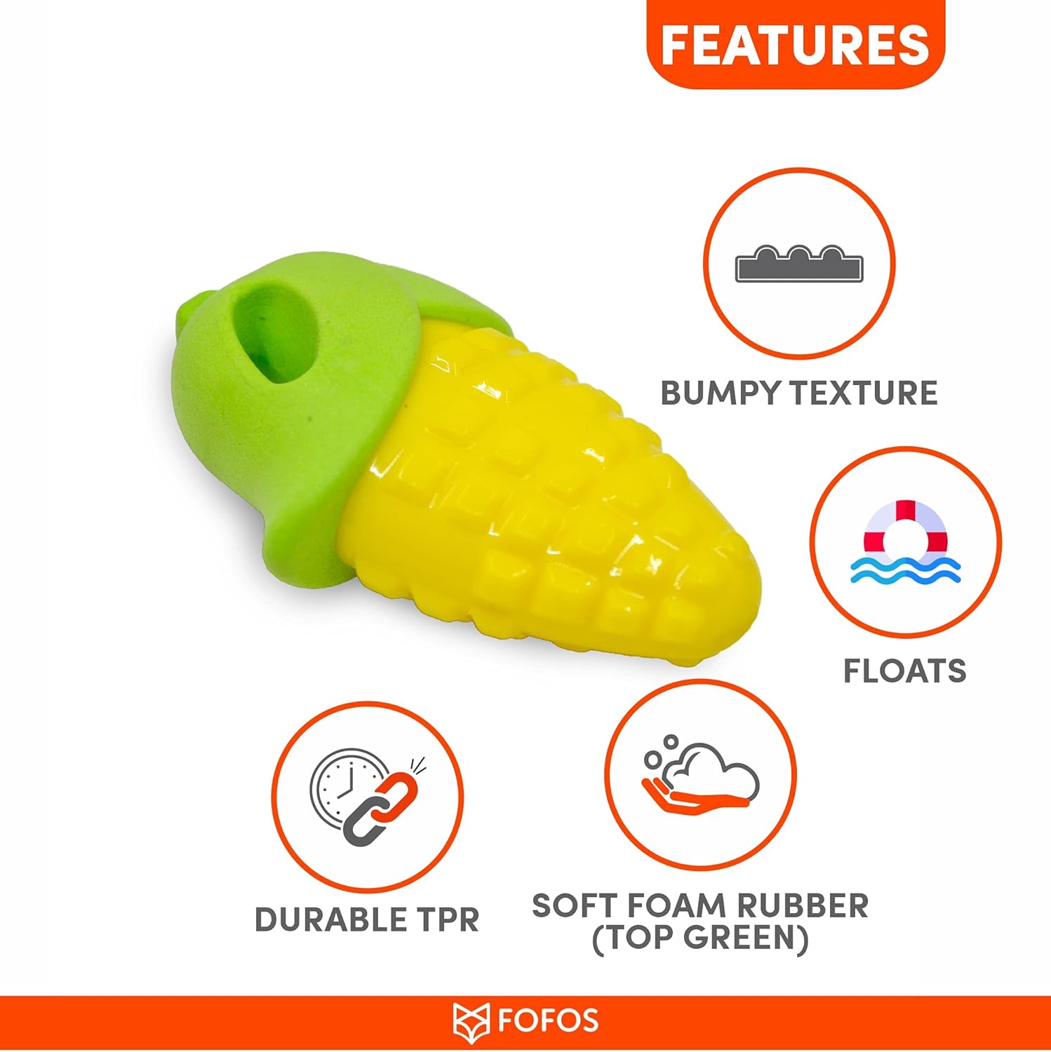 Fun and stimulation in one toy! The FOFOS Corn M is an interactive dog toy designed to entertain and challenge your pet. The top part can be used as a "spoon" to hold wet food, encouraging your dog to lick and chew to retrieve the food. Size: 14x8x4 cm.