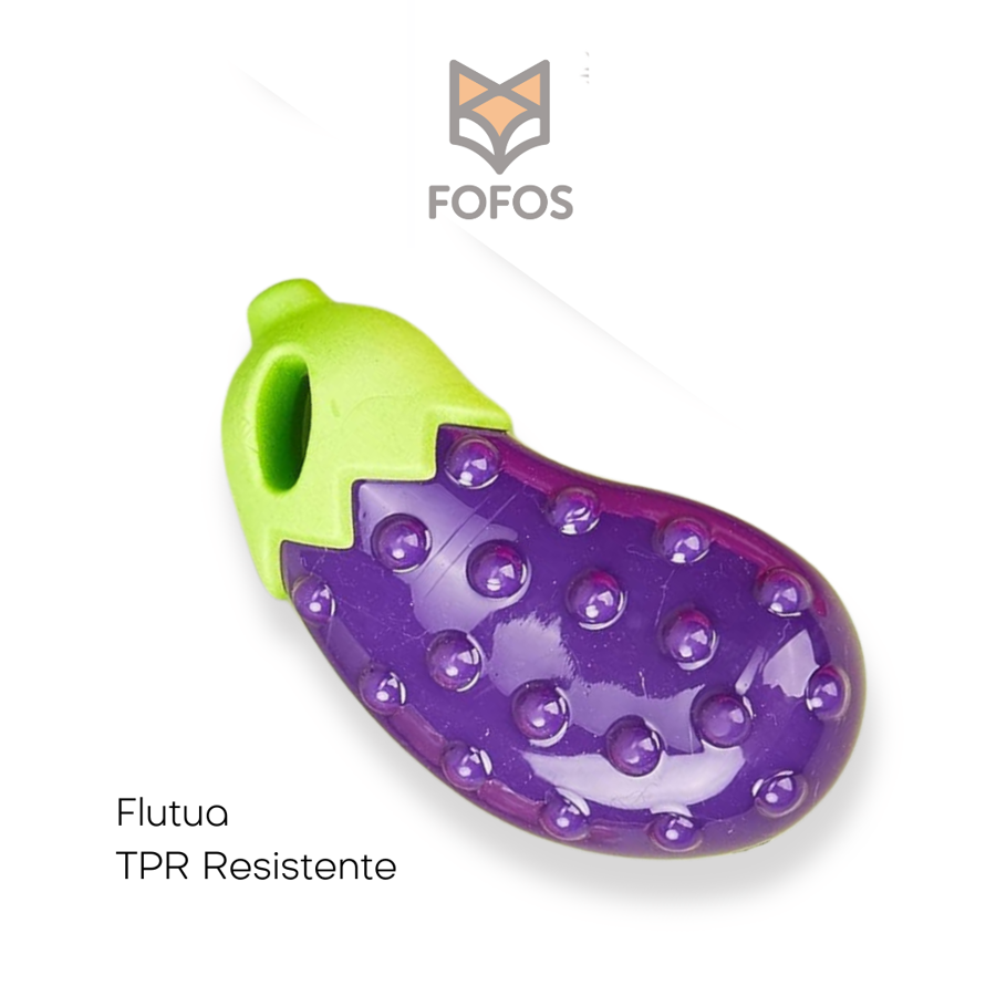 Fun both in and out of the water! The FOFOS Eggplant is a durable interactive dog toy that entertains while stimulating cognitive development. The top part functions as a "spoon" for wet food, making playtime even more enriching. Plus, it floats on water, making it perfect for aquatic fun. Size: 12x5x4 cm.