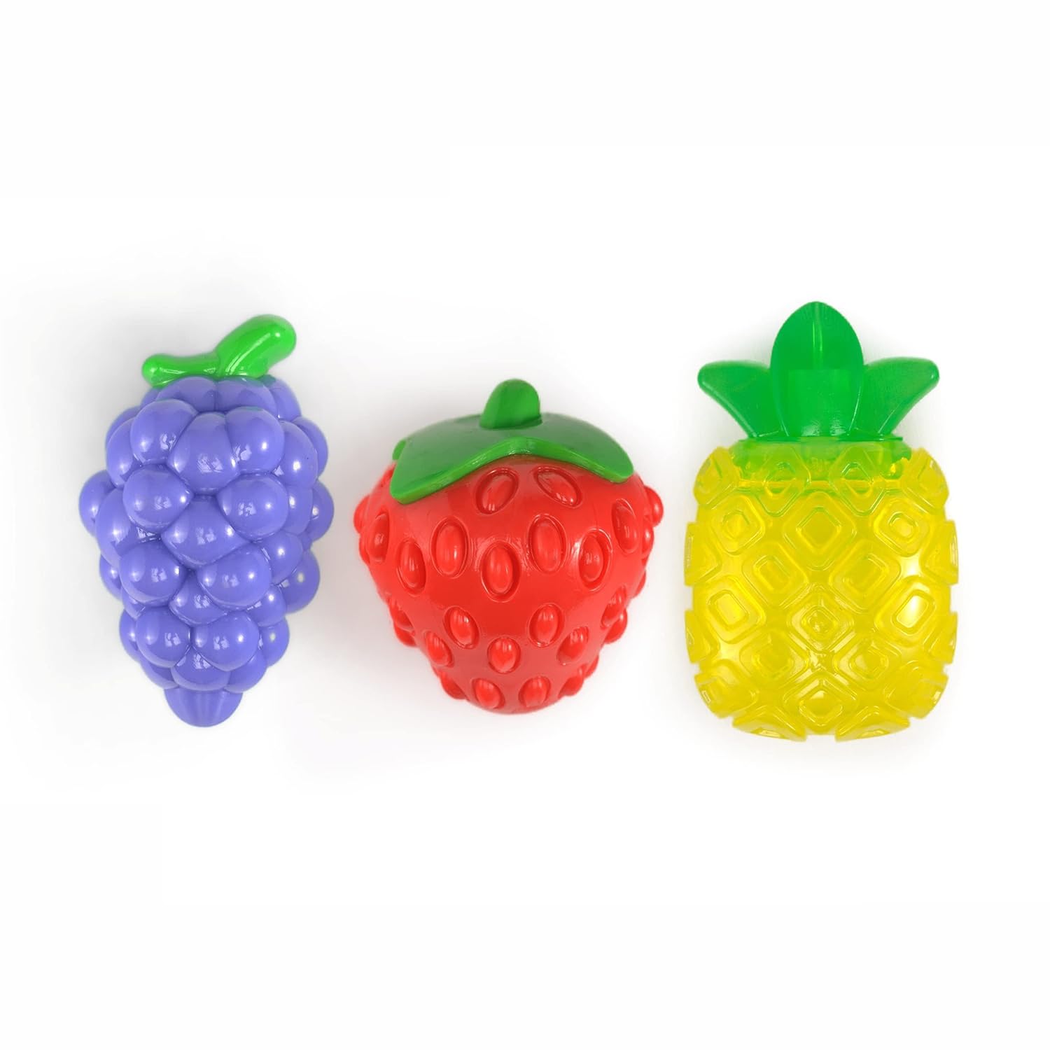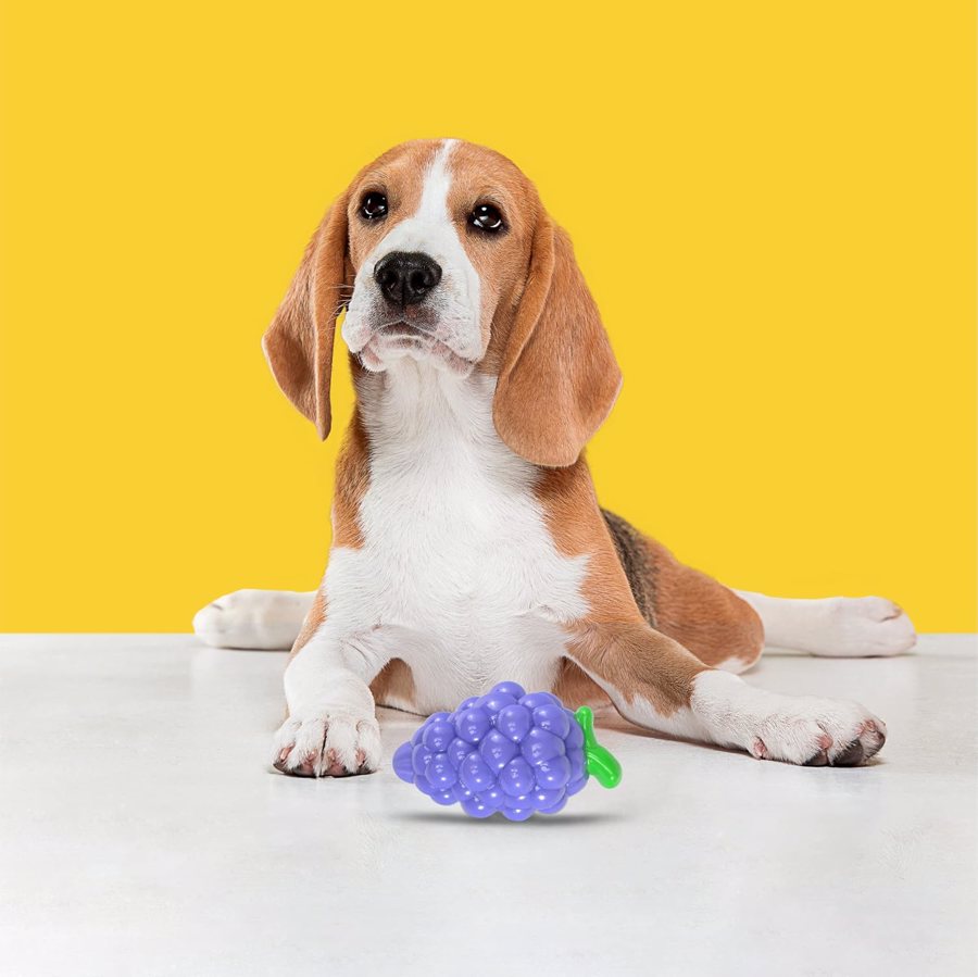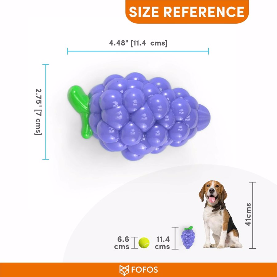 Durable grape-shaped toy, ideal for dogs that love to chew and play. Features a bumpy texture to massage gums and an internal squeaker for extra fun.
