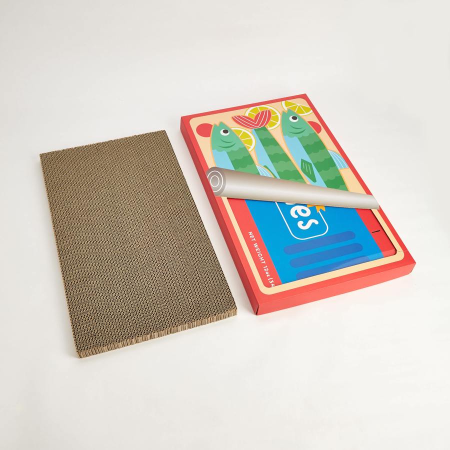 The FOFOS Sardine Canned Box Scratcher is a unique and multifunctional cat scratcher. Designed as a sardine can, it provides a space for scratching, hiding, playing, and lounging. Made from durable cardboard with an integrated scratch surface, it helps keep your cat’s claws healthy while protecting your furniture. With dimensions of 50 × 38 × 60 cm, it offers a spacious and comfortable area for your cat. Both practical and decorative, this scratcher will quickly become your cat’s favourite spot.
