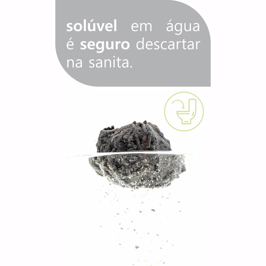 Soluble in water and can be flushed down the toilet or composted.