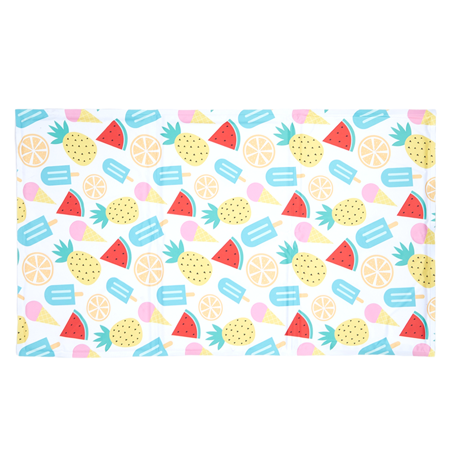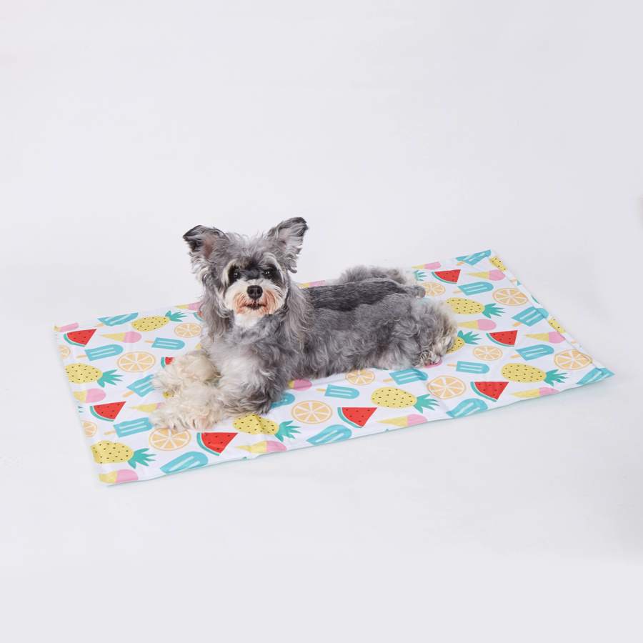 The Tropical Fruits Cooling Mat is perfect for helping your dog stay cool in the heat. It activates automatically upon contact — no electricity or water required.