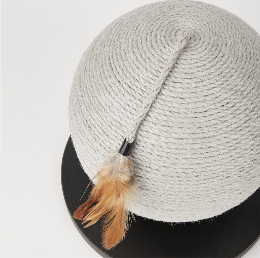This spherical scratching post with feathers is the perfect gift for your cat! Made from natural sisal, it's durable and ideal for satisfying feline instincts.
