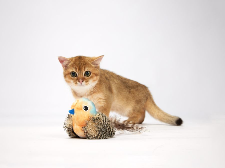 Made with a soft plush body, ribbons, and real feathers, mimicking the feel of real prey for sensory stimulation.