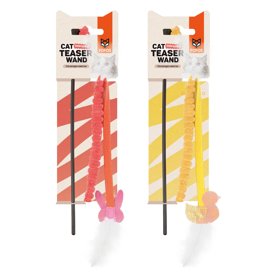 El juguete Bastón para Gato FOFOS fue diseñado para fomentar el ejercicio de tu gato de una manera divertida y atractiva. Con un cordón de tela texturizada, el juguete es perfecto para despertar el instinto de caza de tu gato y mantenerlo activo. En el extremo, encontrarás una mariposa o un pato, junto con plumas y elementos brillantes que hacen que el juego sea aún más emocionante.