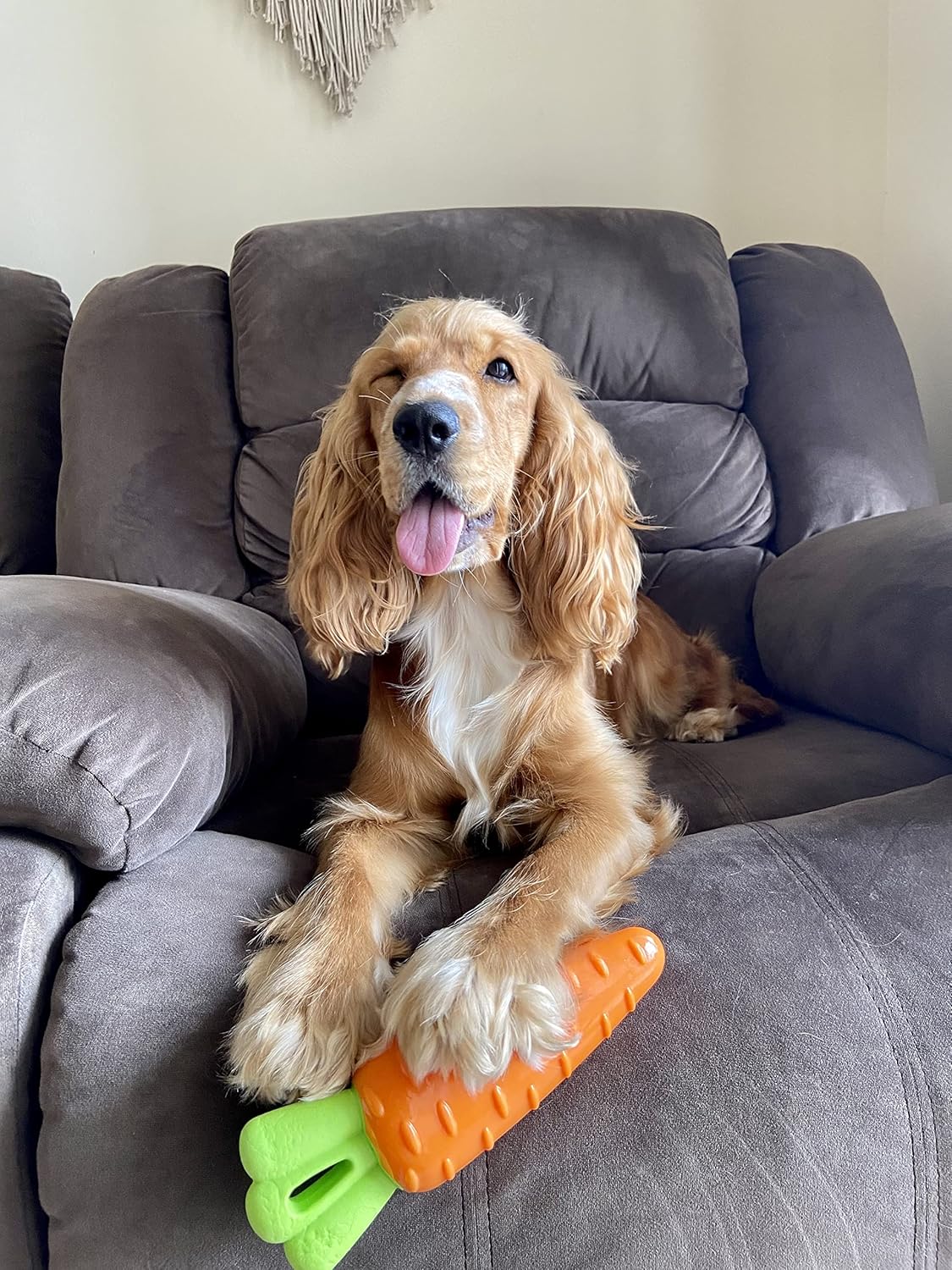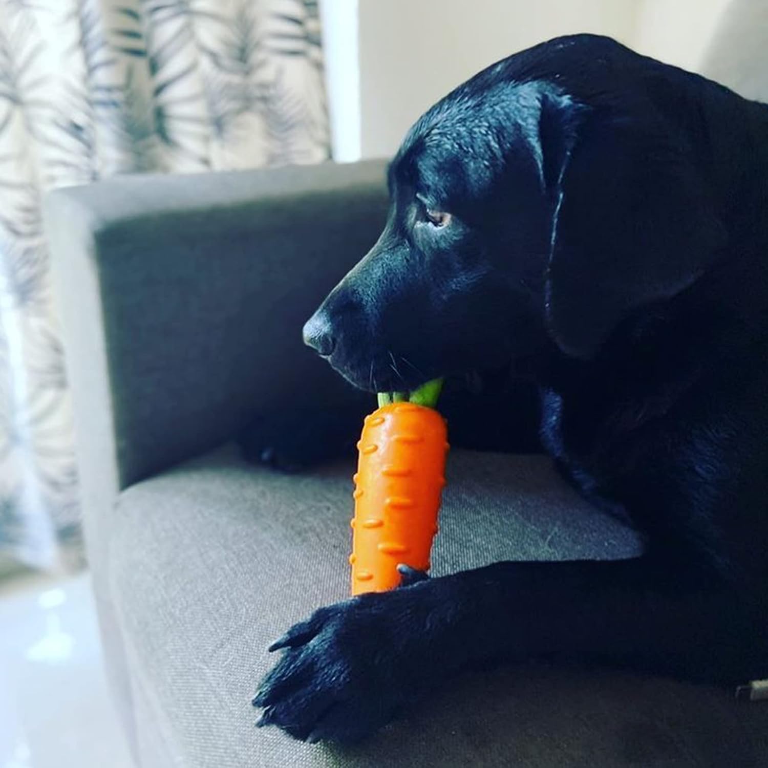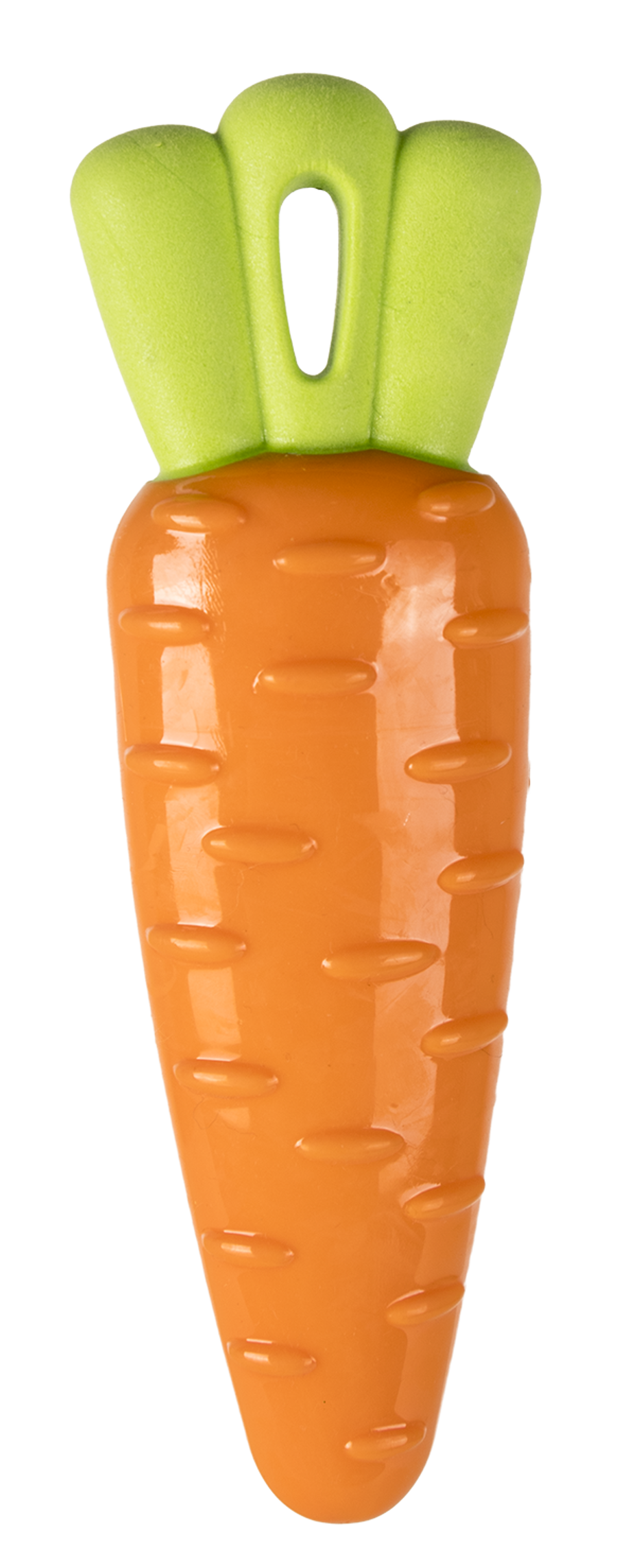 El Cenoura M FOFOS es mucho más que un simple juguete de masticación. Gracias a su diseño innovador, la parte superior funciona como una "cuchara" que retiene comida húmeda, estimulando al perro a interactuar activamente para obtener el alimento. Esta funcionalidad prolonga el tiempo de juego y ayuda a reducir el estrés y la ansiedad. Fabricado con material resistente, es seguro para los dientes y encías.