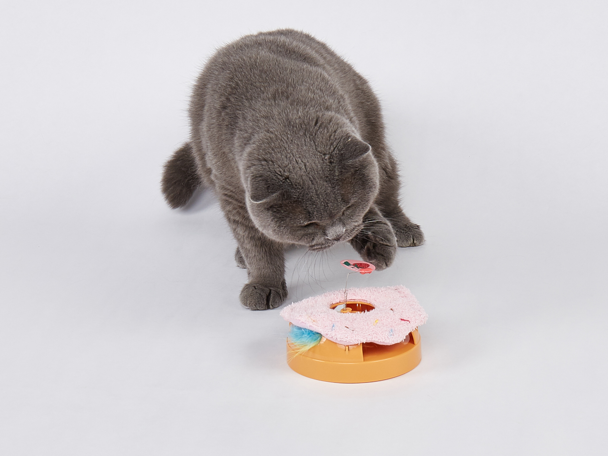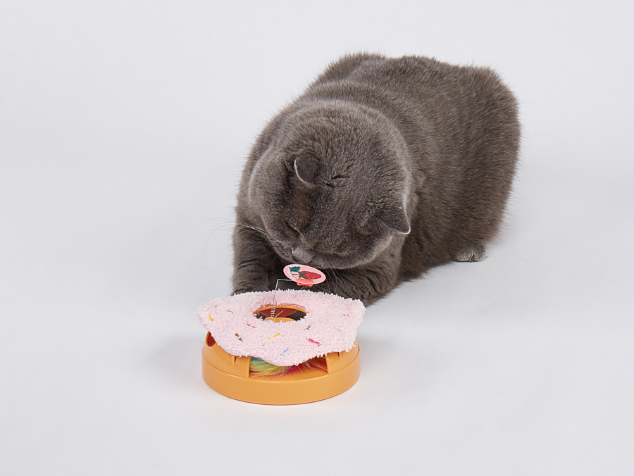 El FOFOS Juguete Interactivo para Gato – Donut está diseñado para mantener al gato activo y mentalmente estimulado. Su diseño en forma de donut incluye aberturas laterales y elementos móviles en el interior, animando al gato a mirar, tocar e intentar atrapar lo que se mueve.