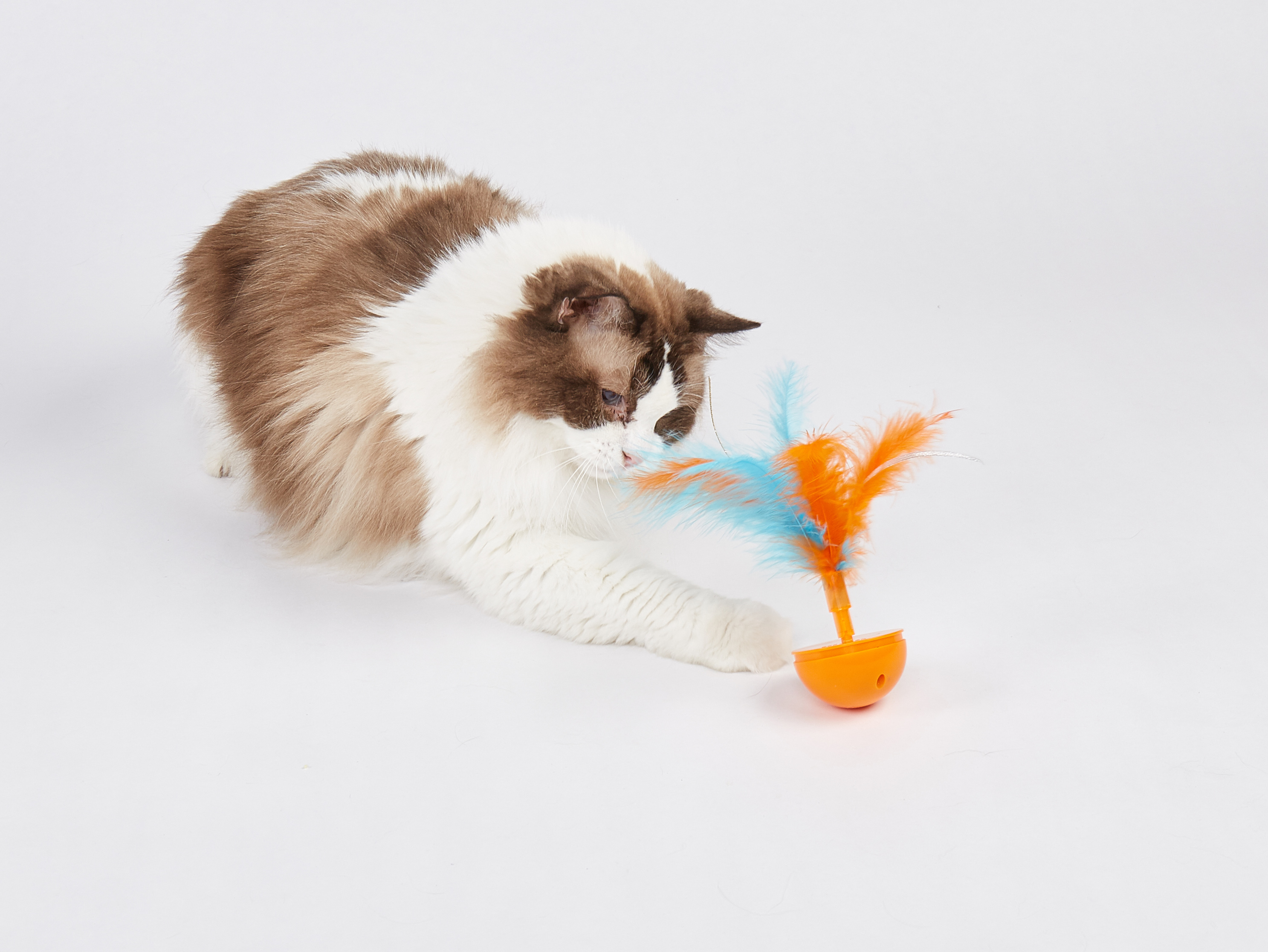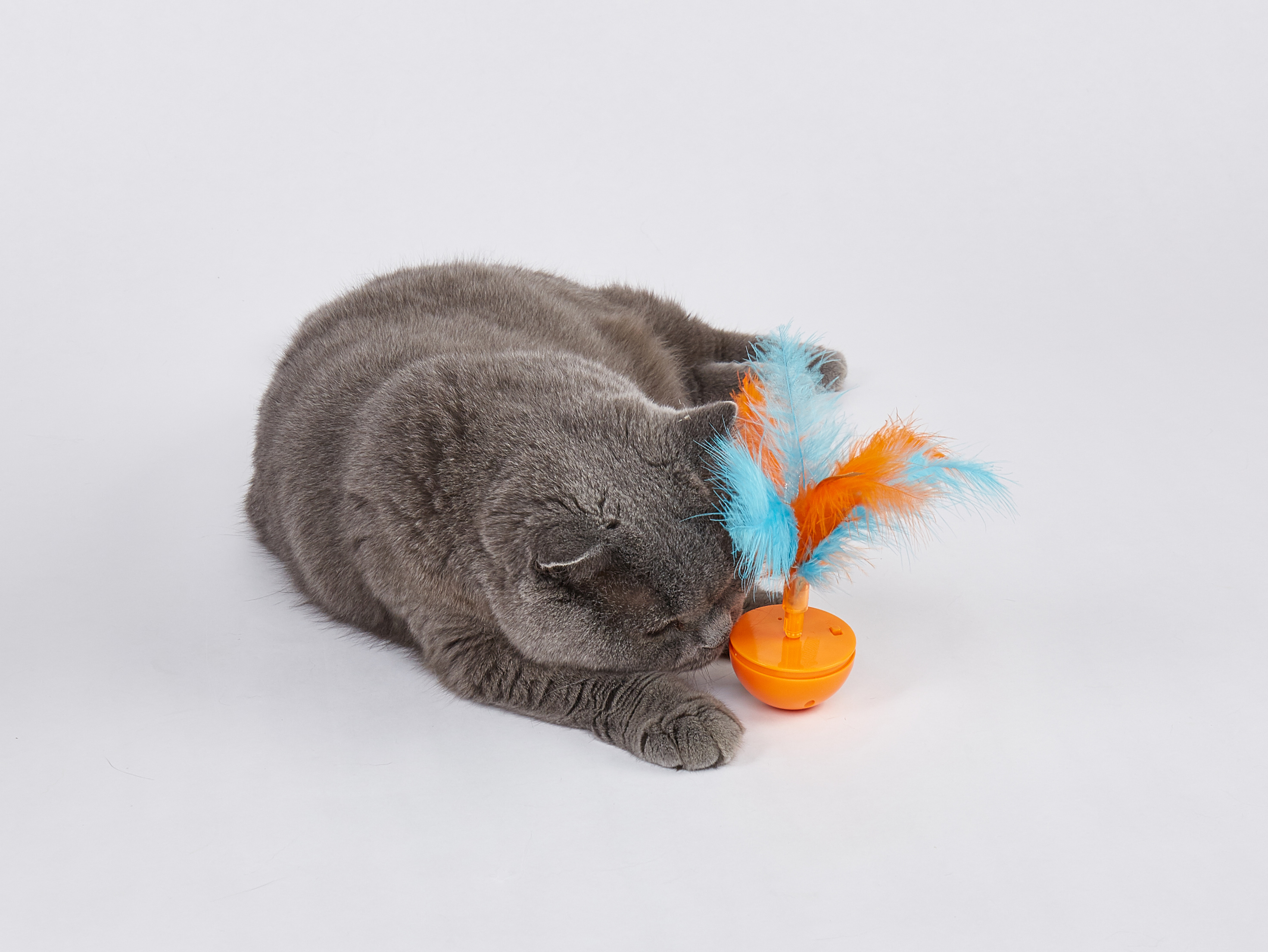 El FOFOS Juguete Interactivo para Gato – Bola con Plumas está diseñado para fomentar la actividad física y mental del gato. La base en forma de bola permite movimientos impredecibles, mientras que las plumas de colores despiertan el instinto natural de caza, animando al gato a perseguir, saltar y jugar.