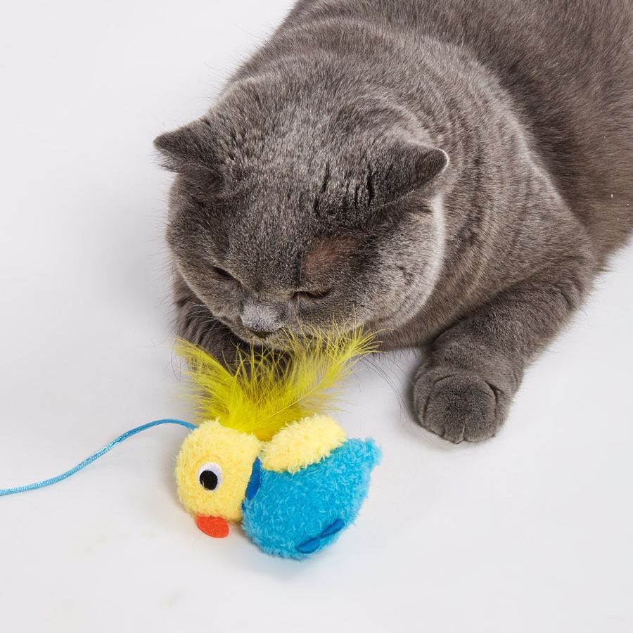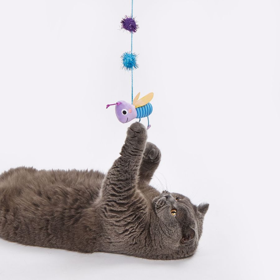 Despierta el instinto cazador de tu gato con la varita interactiva FOFOS con temática de primavera. Esta varita ligera y flexible incluye dos juguetes desmontables: un encantador pájaro azul y amarillo con cola peluda, y un insecto morado con alas brillantes y antenas elásticas. Ambos presentan texturas y colores vibrantes que estimulan los sentidos y fomentan la actividad física. Ideal para juegos dinámicos y para reforzar el vínculo entre gato y humano.• Varita con mango ergonómico y hilo flexible que permite movimientos amplios• 2 juguetes desmontables: pájaro peludo e insecto colorido con alas brillantes• Colores vivos, plumas y cintas que despiertan el instinto natural de caza• Fomenta el ejercicio físico, reduce el aburrimiento y mejora el bienestar• Apto para gatos de todas las edades – desde gatitos hasta adultos