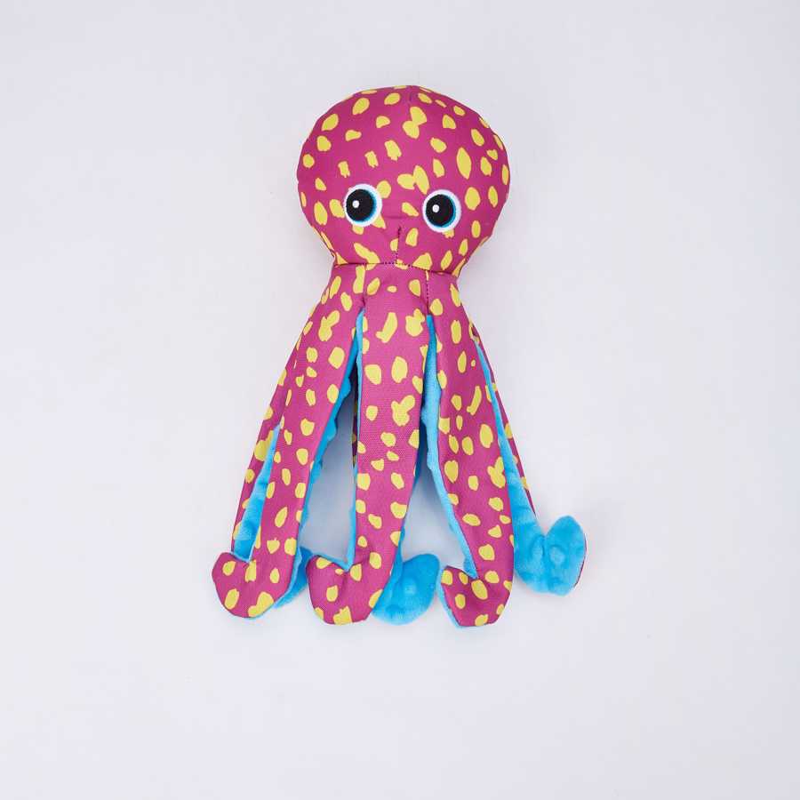 Pulpo rosa de peluche con tejido reforçado y sonido interior. Ideal para perros pequeños y medianos.
