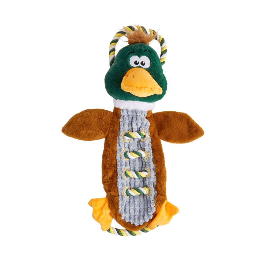 Divertido juguete con forma de pato y cuerda integrada, ideal para juegos de tira y afloja, masticación y juego interactivo. Ayuda a reducir el aburrimiento y fomenta la actividad.