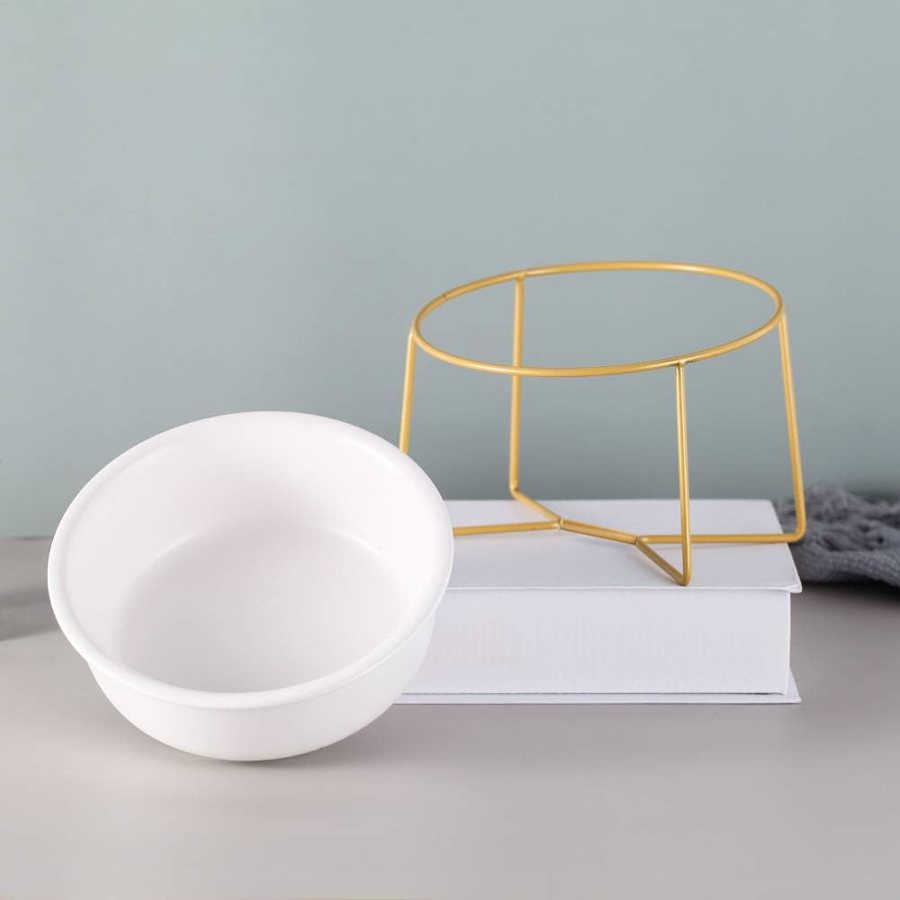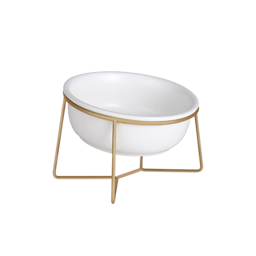 Tazón Cerámico Blanco con soporte dorado de 480ml, ideal para proporcionar una experiencia de alimentación cómoda y estilosa para tu gato. La inclinación fija del tazón ayuda a mejorar la postura durante la alimentación, facilitando la digestión y promoviendo el bienestar de tu gato.