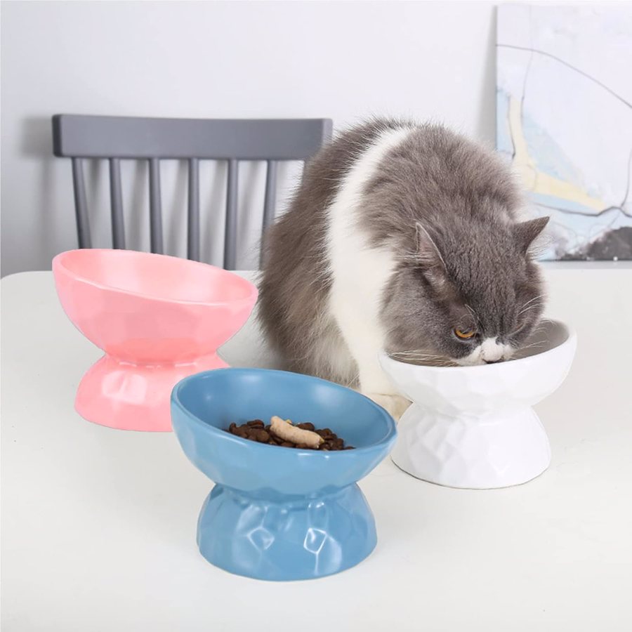 Tazón de Cerámica Inclinada con Diseño Ondulado, con una capacidad de 200ml, perfecto para proporcionar una experiencia de alimentación cómoda y saludable para tu gato. La forma inclinada ayuda a reducir la presión en el cuello y facilita la digestión, mientras que el acabado en azul y el diseño ondulado añaden un toque decorativo moderno.