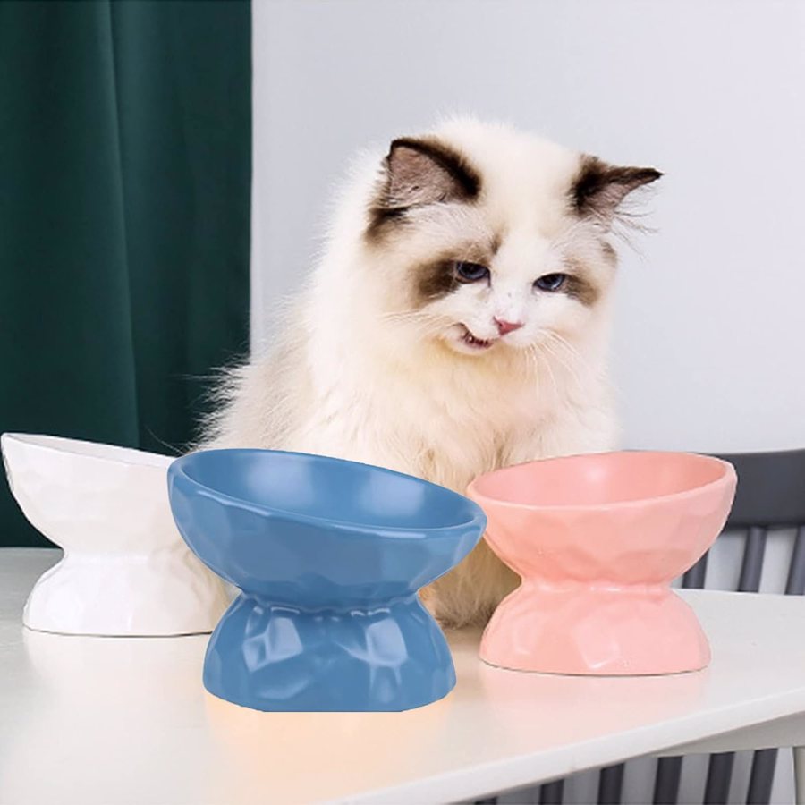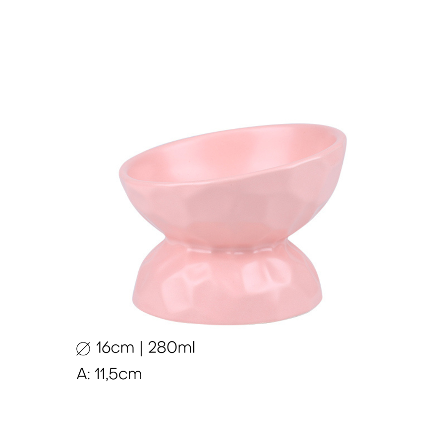 Tazón de Cerámica Inclinada con Diseño Ondulado, con una capacidad de 280ml, perfecto para proporcionar una experiencia de alimentación cómoda y saludable para tu gato. La forma inclinada ayuda a reducir la presión en el cuello y facilita la digestión, mientras que el acabado en rosa claro y el diseño ondulado añaden un toque decorativo moderno.