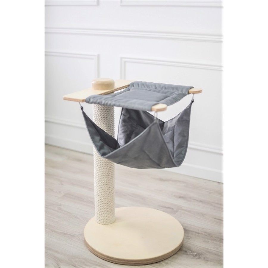 O seu gato não só poderá esticar e afiar confortavelmente as suas garras no suporte, como também escolher qual das duas redes, a mais estável ou a mais livre, necessita para um descanso tranquilo no momento. Uma ótima opção com dois lugares para dormir.