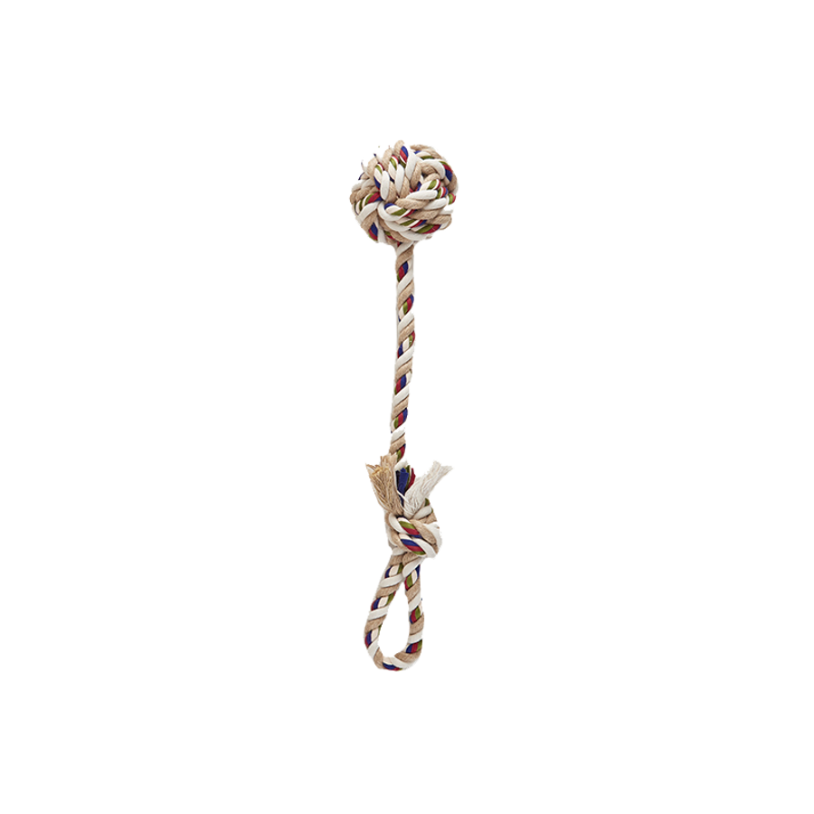 O FOFOS Corda com Bola Entrançada é ideal para jogos de força e brincadeiras interativas com o teu cão. Este brinquedo robusto apresenta uma pega num extremo e uma bola entrançada no outro, oferecendo uma experiência divertida e segura tanto para ti como para o teu cão. Disponível nas cores bege, vermelho, azul e branco, é perfeito para brincadeiras de cabo de guerra e jogos de força. Feito de uma mistura durável de algodão, poliéster e juta, o brinquedo garante durabilidade, mesmo durante as brincadeiras mais intensas.