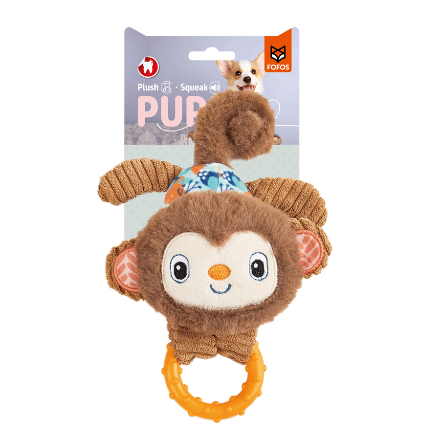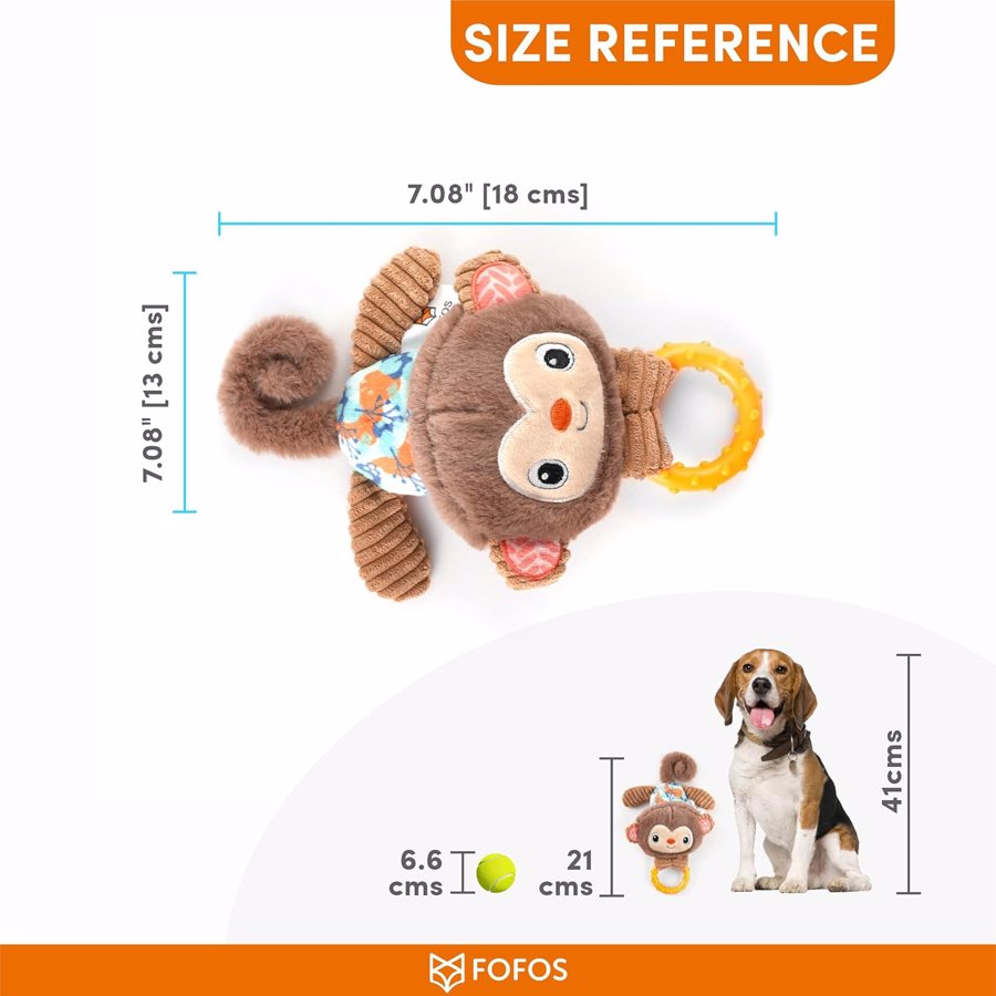 O brinquedo de peluche FOFOS Macaco foi desenvolvido especialmente para cachorros. Inclui um apito interno para estimular a curiosidade e um mordedor em borracha resistente, ideal para aliviar o desconforto das gengivas durante a dentição. Com uma textura suave e segura, este brinquedo é o companheiro ideal para o seu patudo nos primeiros meses de vida.