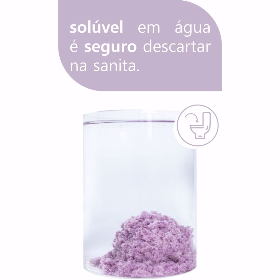 Devido à sua composição natural, a areia é biodegradável e solúvel em água. Pode ser descartada com segurança numa sanita.