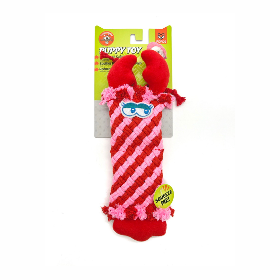 O brinquedo Lagosta com Corda FOFOS junta o melhor dos dois mundos: uma estrutura em tecido macio com corda entrelaçada que convida a morder e brincar sem parar. Graças ao seu apito interno e forma atrativa, é perfeito para entreter o seu cão por longos períodos.
