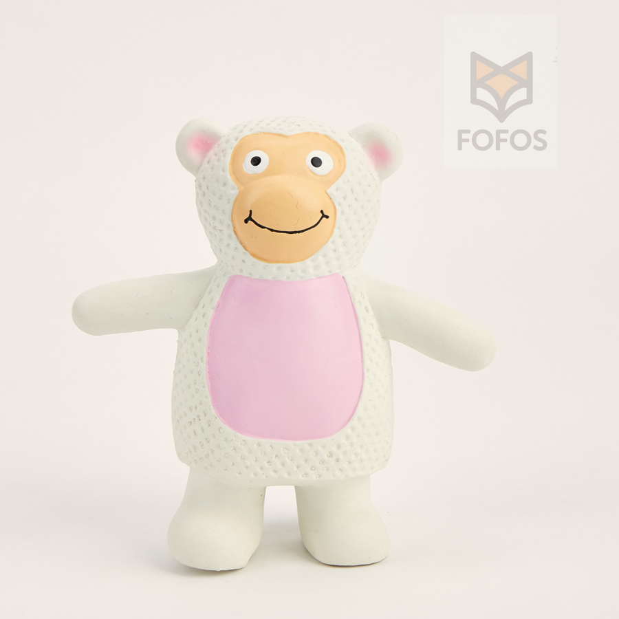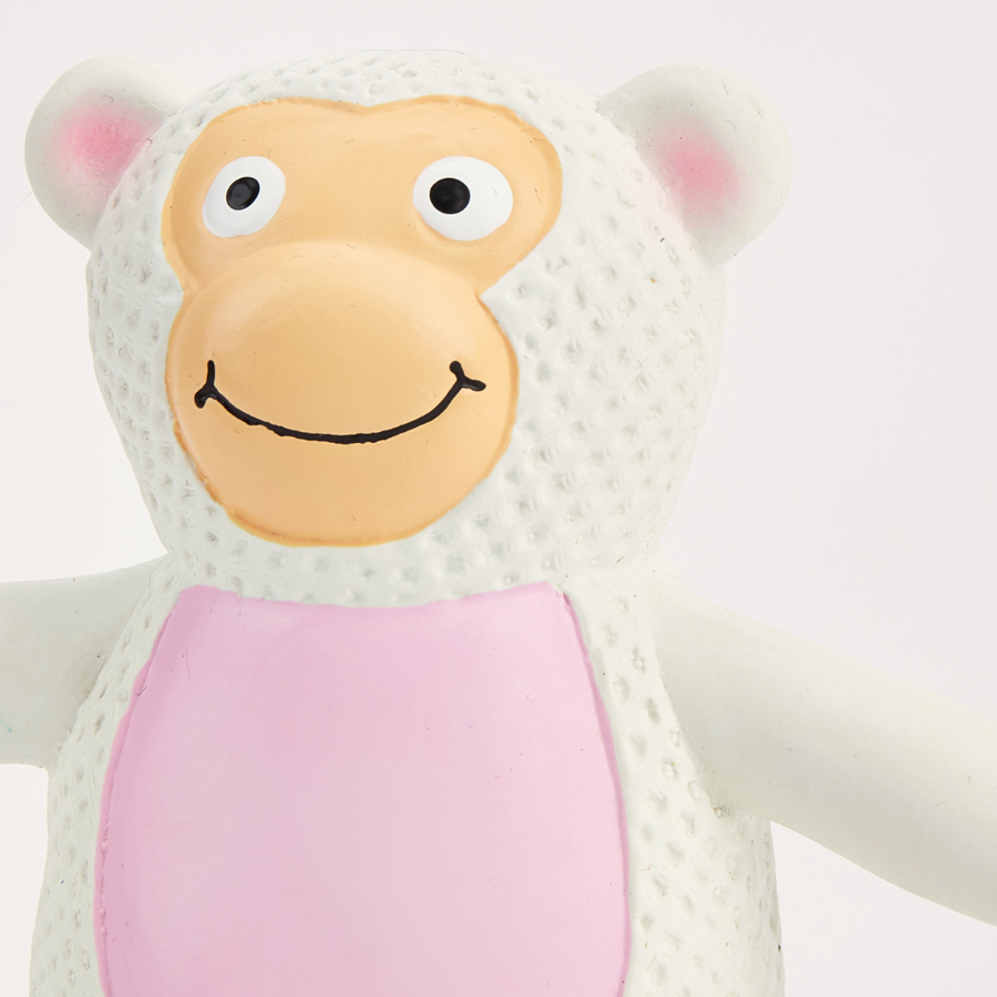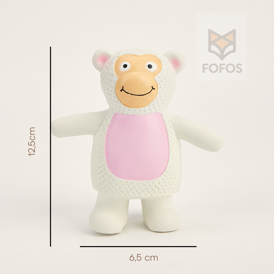 Design atrativo: Um macaco divertido com cores vibrantes, que chama a atenção do cão.