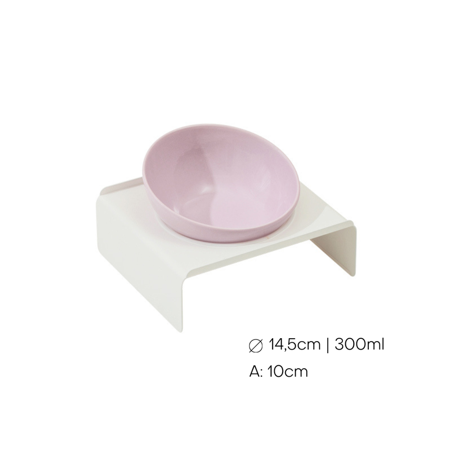 Taça cerâmica de 300ml com suporte metálico branco, ajustável para o conforto do seu gato. Disponível também em beige e verde água.